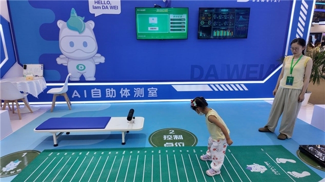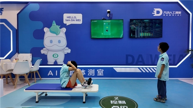 据悉,大沩科技在本届博览会上重点展示了其智慧体育场景解决方案。其中,智能化无人值守体测室高度还原校园环境,用户通过人脸识别即可快速开始测试。该系统利用无感摄像头精准实时捕捉动作细节,如跳远踩线、仰卧起坐幅度等,并即时在大屏反馈动态运动轨迹图表。测试完成后,智慧体育大数据平台可瞬间生成包含体能指标分析与动作短板评估的详尽体测报告。
